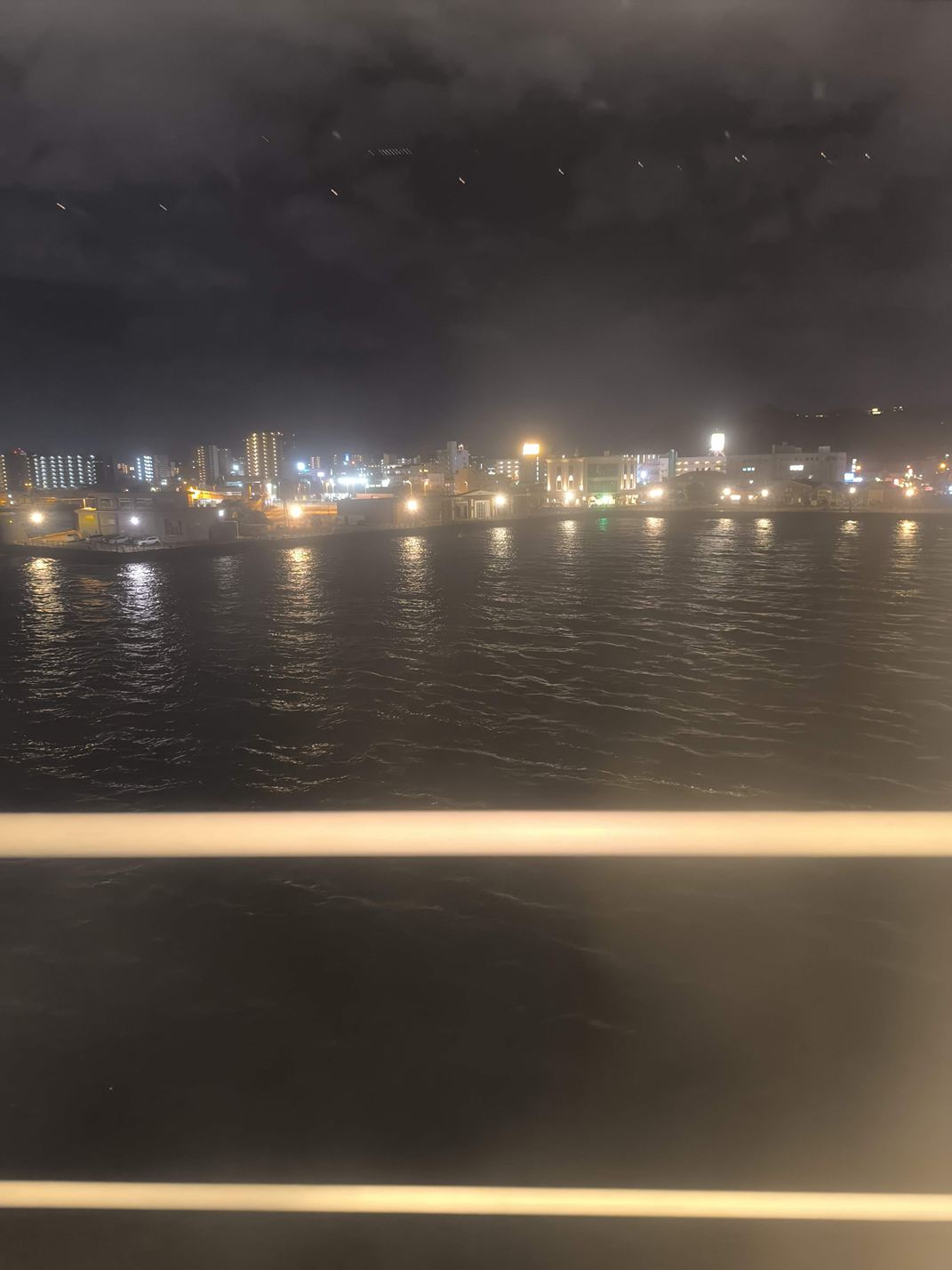 座席も出港準備をしている港の夜景が見えて、おしゃれ、悪い気がしないです。