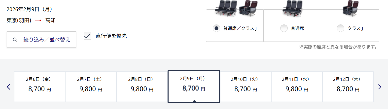 羽田空港 高知空港の便が¥8,700です。