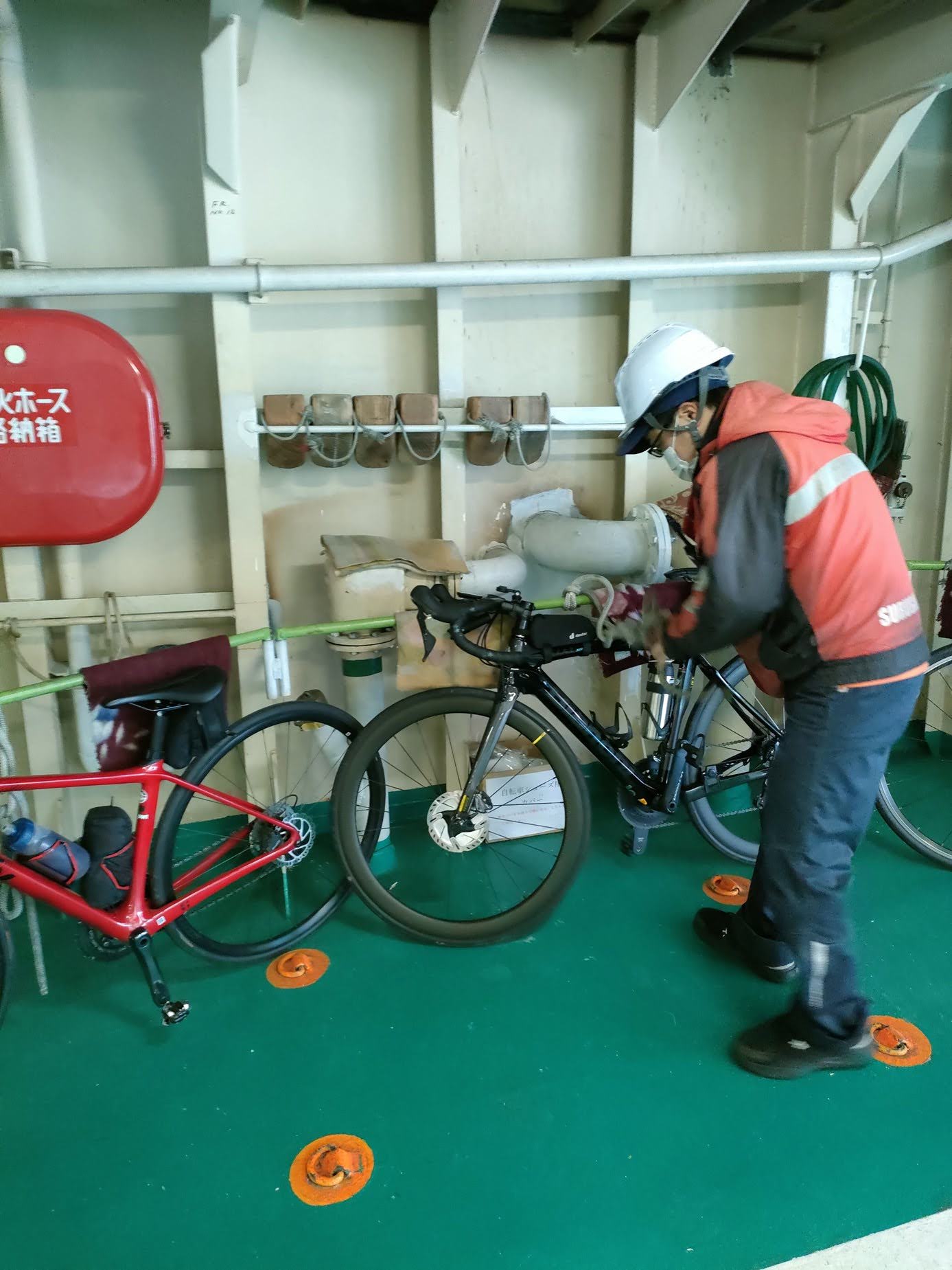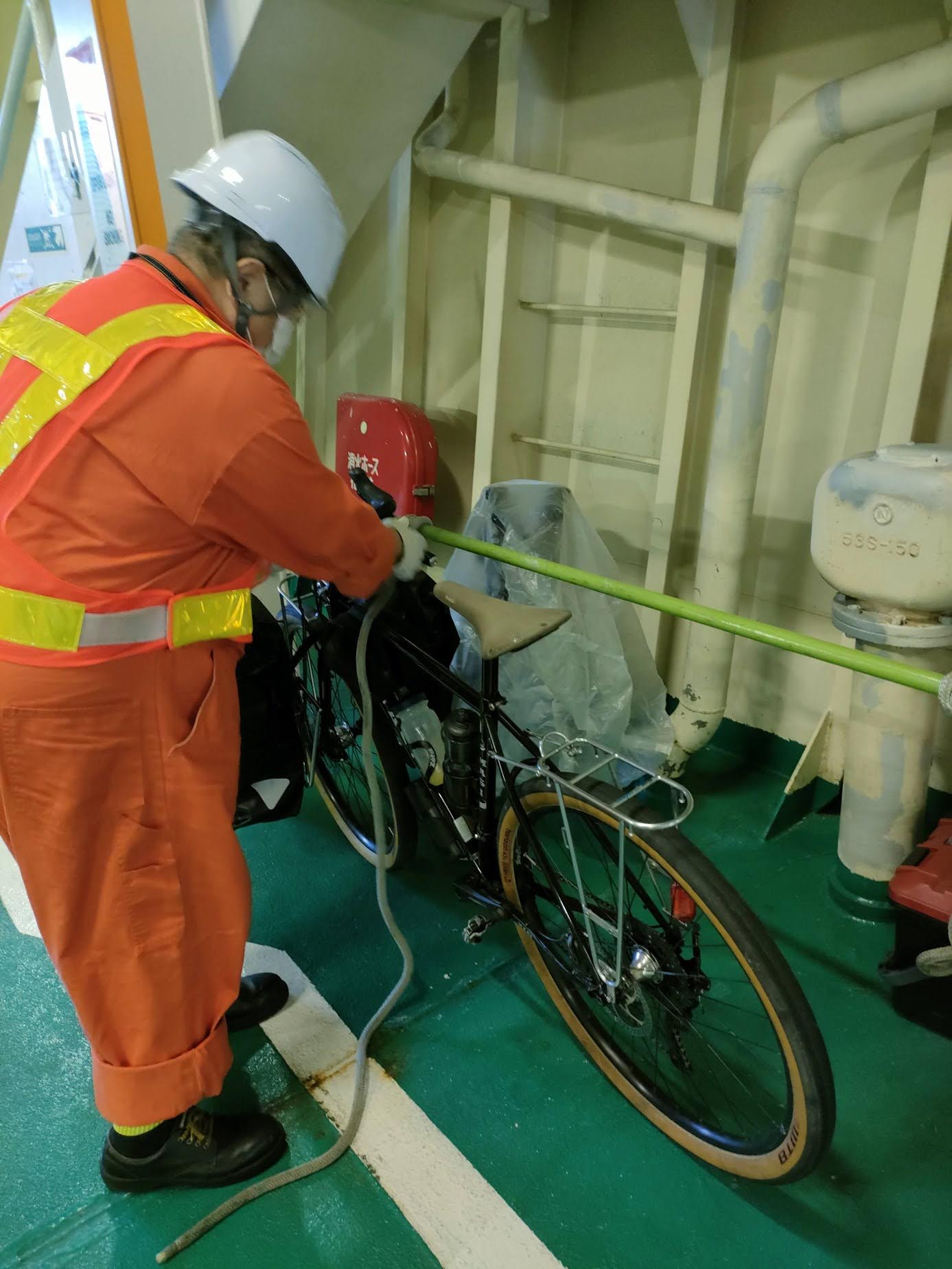 ロードバイクの固定方法は各フェリー会社さんによって異なります。