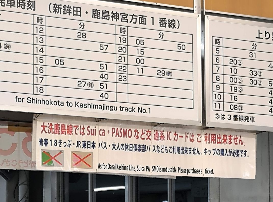 大洗駅の鹿島臨海鉄道さんは交通系ICカードの利用ができません。