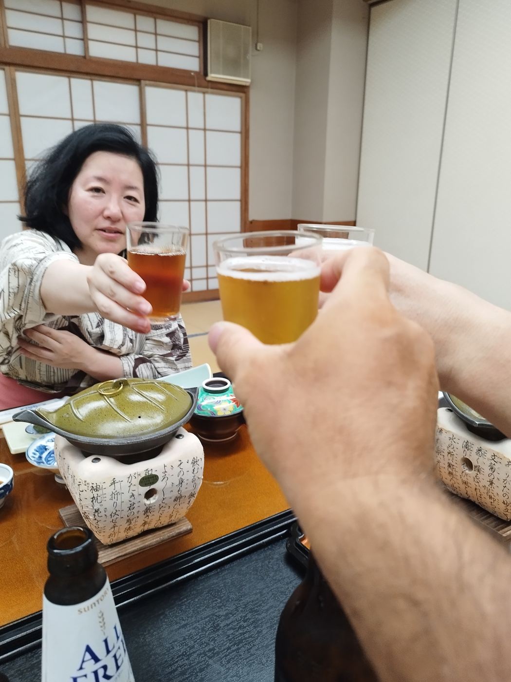 ノンアルコールビールで乾杯です。