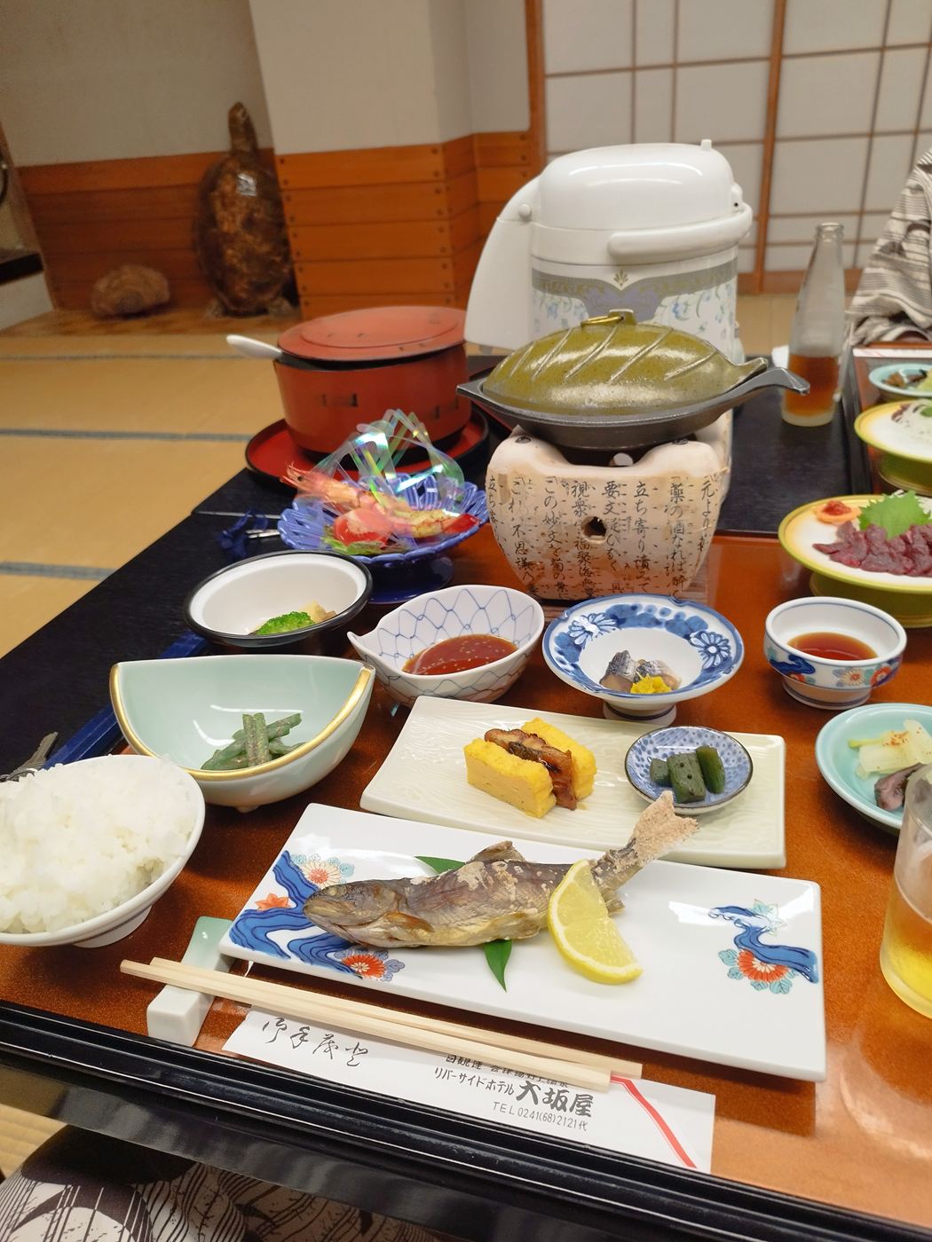 このお値段で、朝夕のお食事付き、温泉は極上、眺望も良い、と会津西街道を旅行するときはここを定宿にしようと決めました。
