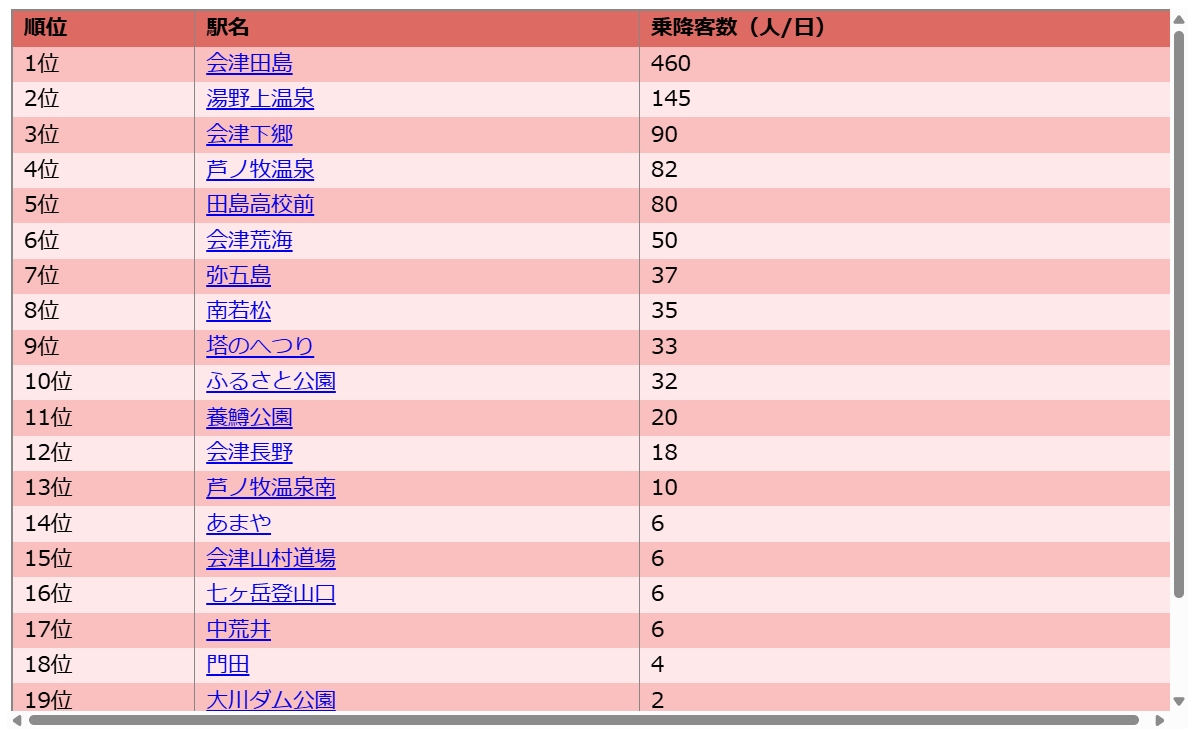 最大の会津田島駅でも一日460人です。