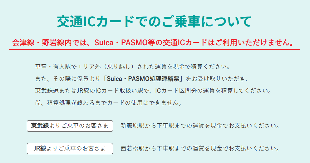 初見殺し 会津鉄道 野岩鉄道の注意点 交通系ICカードは使えない