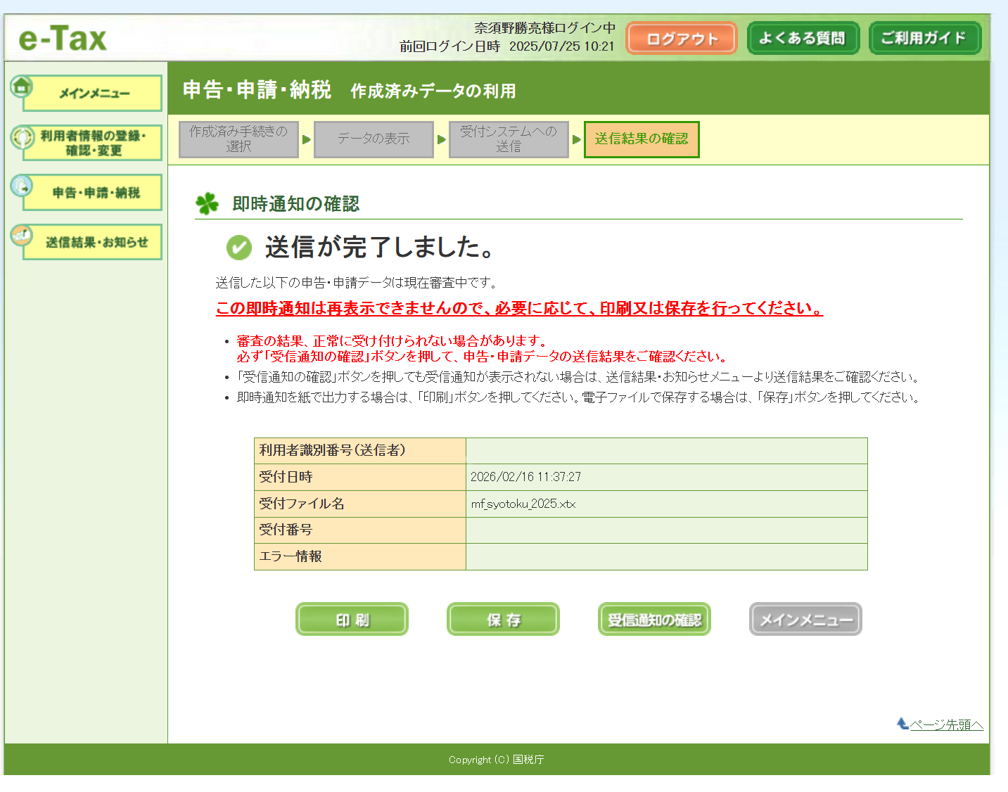 ラッコ店長は、初日(2026年2月16日)に確定申告手続きを完了しました。