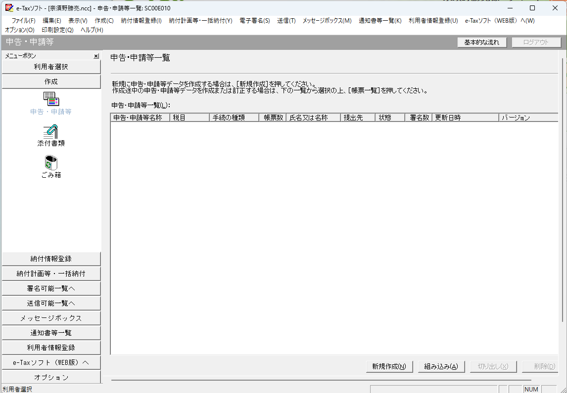 e-Taxの利用が初めての場合は、アカウントを作成します。