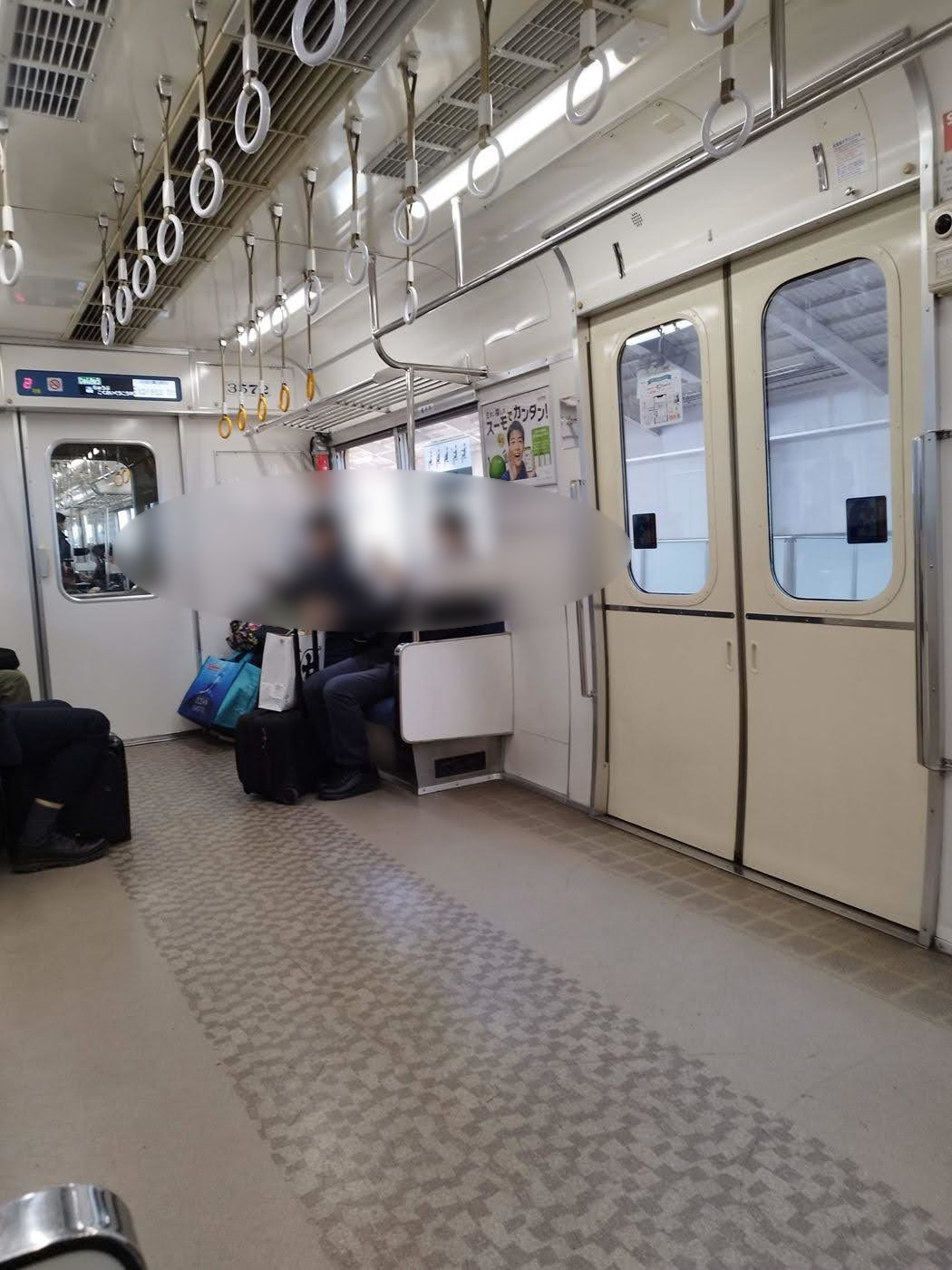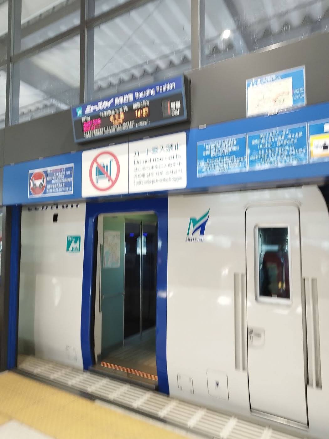 空港行きの電車ということもあり、大きな荷物、お土産などを持参しているお客さんが目立ちました。