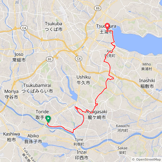取手駅から出発して、利根川、小貝川沿いを走ります。