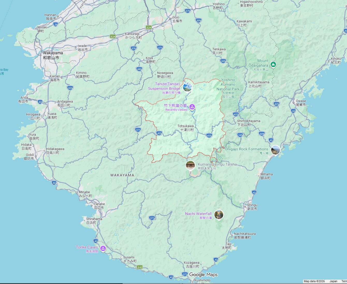 熊野大社から北に進み、奈良県吉野方面に向かいたいのです。
