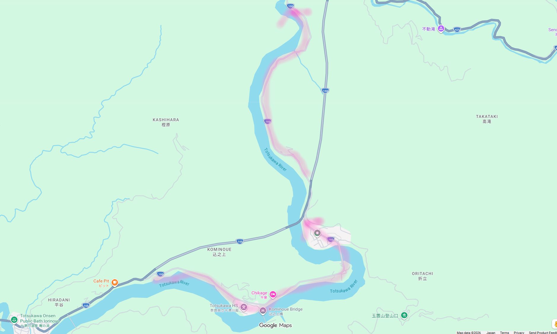 国道168号線を北上していきます。