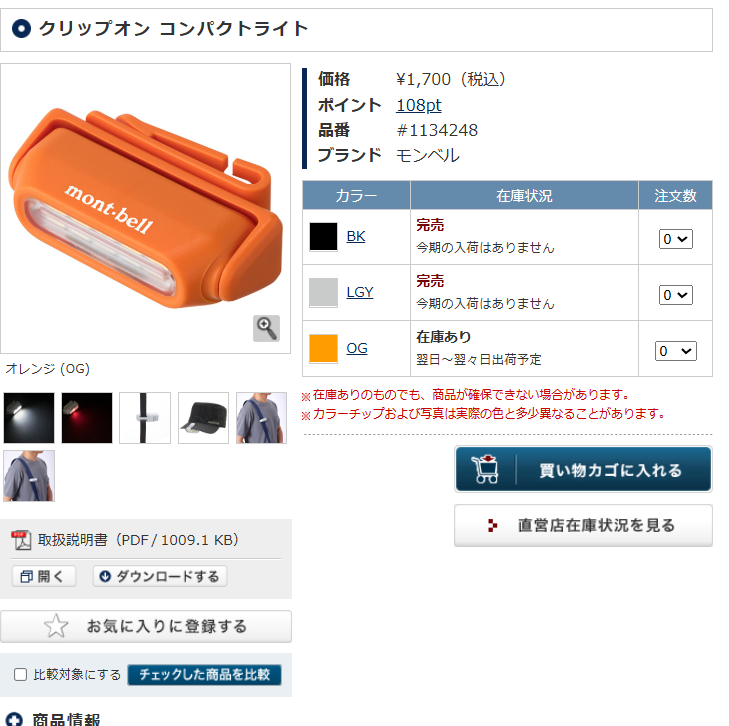 【モンベル】クリップオン コンパクトライト