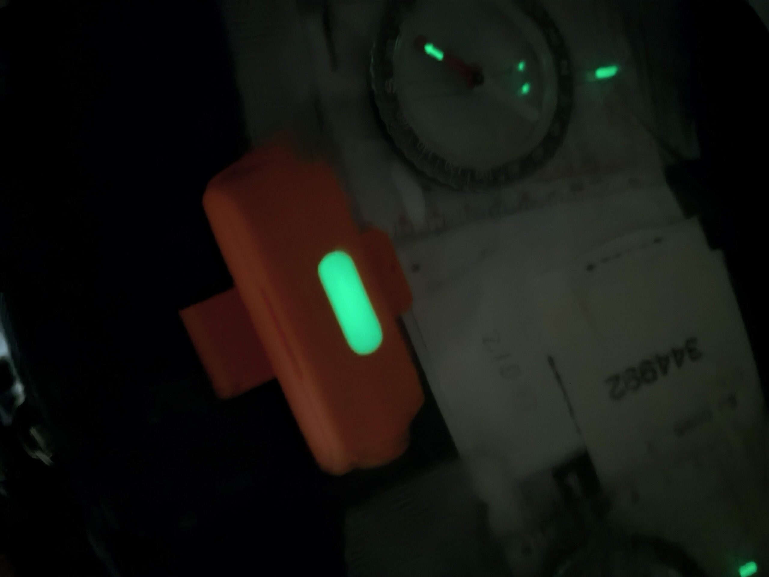 ボタンは蓄光素材が使われていて、夜間、光って見えます。