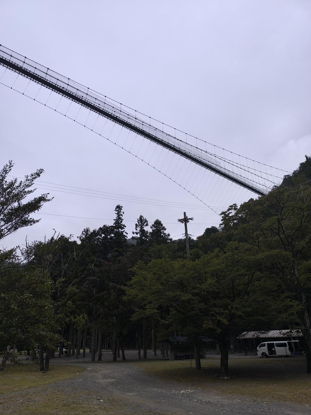 つり橋の里キャンプ場は、谷底にあるキャンプ場で、道路に出るまでに断崖、とんでもない急坂をのぼる必要があるのです。