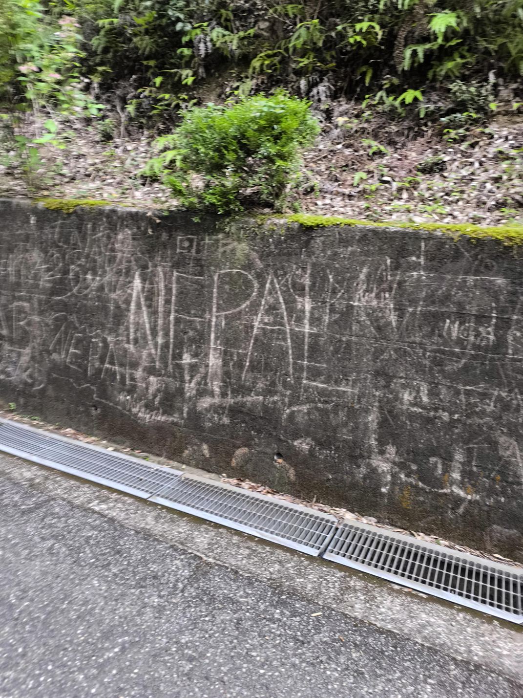 坂道の脇には、さまざまな落書きがありました。