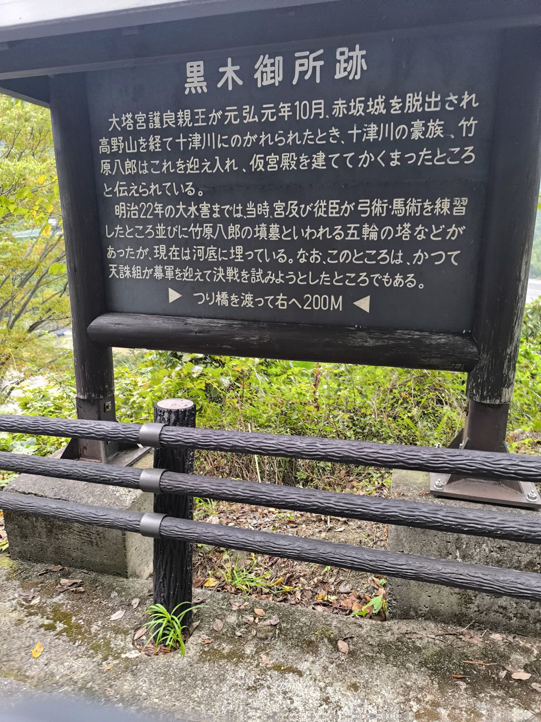 南北朝時代、後醍醐天皇の息子さん、護良親王さんが滞在していた御所、黒木御所の説明が昨日とは異なる場所にありました。