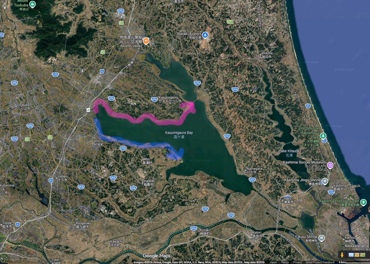 今回は、参加者様、私を含めて、霞ヶ浦は何度も訪れた方が多く、あえて反時計回りにはこだわりませんでした。後述しますが、コースの半分は時計回りにしています)