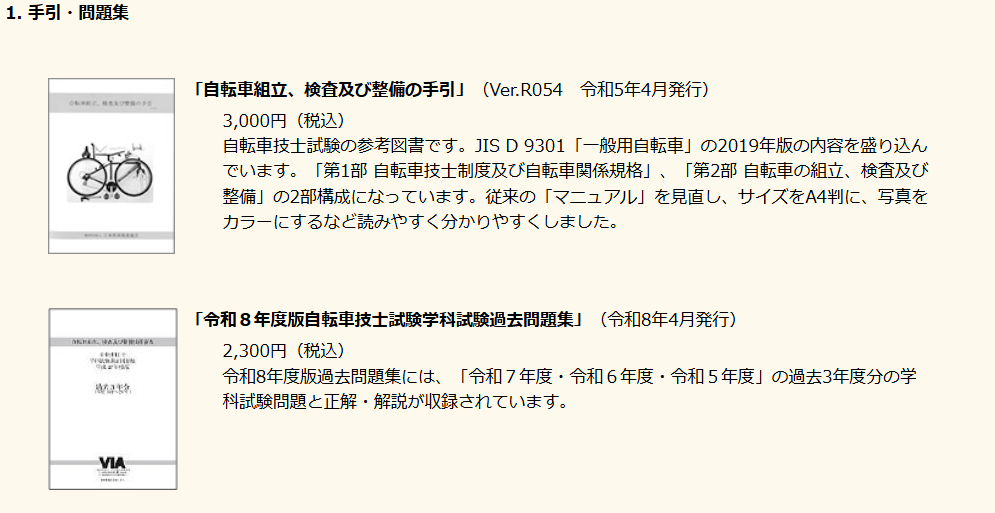 2026年4月1日に、日本車両検査協会さんから、自転車技師試験の過去問が新たに販売されました。