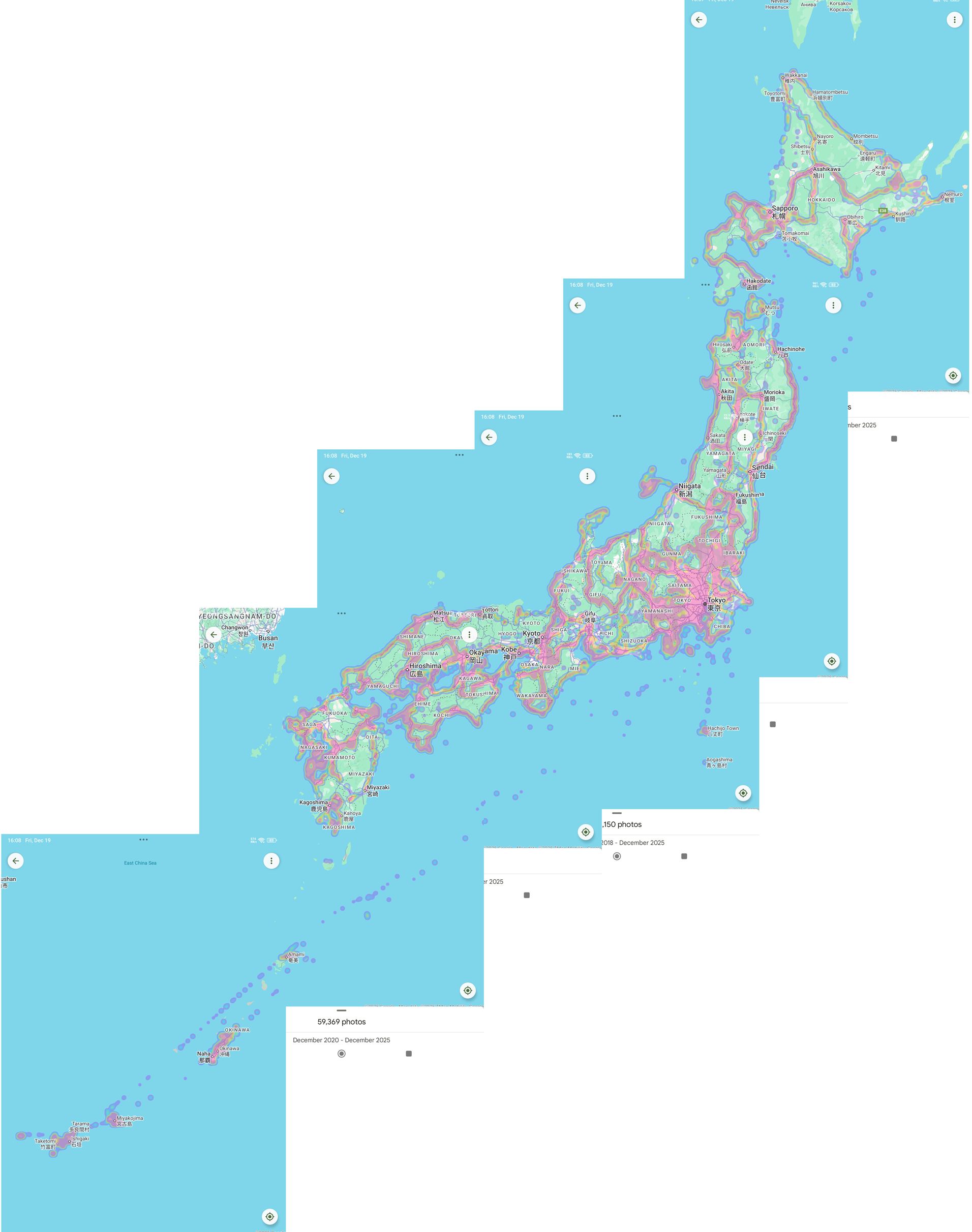 ところどころ、薄くなっている箇所もありますが、日本の海岸線沿いは、ほぼ全て走破済みです。